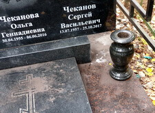 В данном заказе нам предстояло выгравировать новую надпись на широком гранитном надгробье без снятия памятника. Так выглядела могила до начала проведения работ.