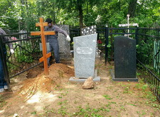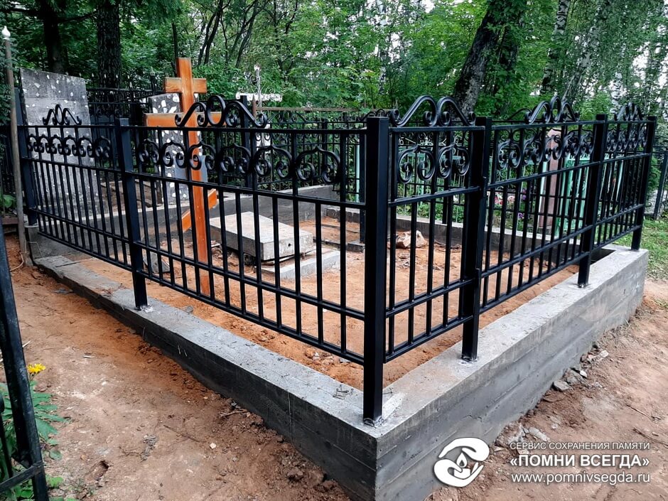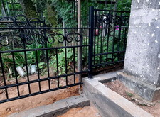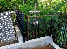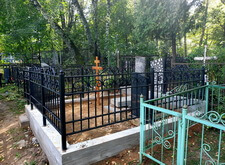 Затем наступил самый ответственный этап работы: монтаж ограждение. Работа по его установке опять-таки заняла достаточно долгое время, однако в результате чего по периметру могилы была установлена достаточно высокая статусная металлическая ограда, сразу же выделяющая место захоронения на фоне других участков. На фотографиях ниже представлен окончательный внешний вид могилы с разных ракурсов на момент завершения работ.