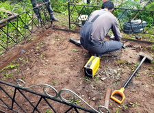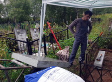 Первым делом мы принялись за уборку: убрали с территории места захоронения абсолютно всё, включая выложенную заказчиком плитку, памятники, а также сорную траву.