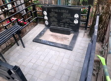 В данном заказе нам предстояло практически полностью преобразить небольшое место захоронения, рассчитанное на пятерых покойных. Клиент решил переделать на могиле практически всё: демонтировать двойной бетонный цветник, заменить ограждение, а также выложить территорию участка гранитной брусчаткой. На фотографии отображено изначальное состояние места захоронения на момент нашего приезда на кладбище.
