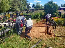 В данном случае нам предстояло полное благоустройство участка. Изначально на территории могилы был только невысокий холмик и простой деревянный крест.