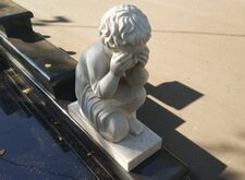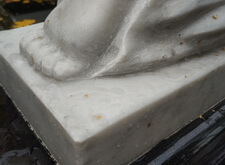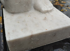 Далее мы перешли к обработке мраморных элементом специальным раствором, цель которого – защитить белый камень от проникающих извне частичек воды и влаги. Такое покрытие помогает, во-первых, оставить мраморные детали чистыми и светлыми, а, во-вторых, предотвращает преждевременное разрушение структуры камня.