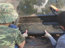 Первым делом мы промыли кёрхером место захоронения, делая основной упор на мраморные элементы.