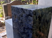 Так выглядело место захоронения на момент окончания работы: деревянный крест покрыт защитным раствором; мраморные изделия отшлифованы и покрыты гидрофобной субстанцией, стыки элементов промазаны белым герметиком; полые столбики, восстановлены; в цветнике заменена земля и посажен газон.