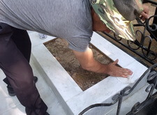 Закончив работать с деревом, мы вновь вернулись к мрамору. Его предстояло тщательно отшлифовать, убирая образовавшийся на камне белёсо-желтоватый налёт.