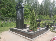 У подножья памятника клеим ранее изготовленную книгу, по обе стороны от неё укрепляем вазы. В расположенную в отдалении от надгробья клумбу сажаем тую.