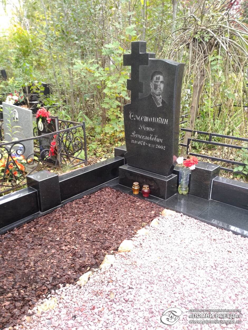 Гранит помыли, цветы в цветнике убрали, закрыли землю корой, могилу почистили от опавшей листвы. Могила снова в полном порядке.