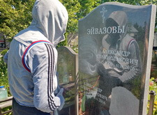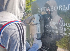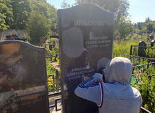 В ходе этой работы нам предстояло заменить два уже нанесённых на памятник портрета. Делавшие их люди не согласовывали изображения с клиентом, и привезли на могилу памятник с уже выбитыми фотографиями и надписями. К нам заказчик обратился с просьбой всё-таки сменить фотографии, а так надгробье смотрелось изначально.